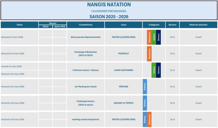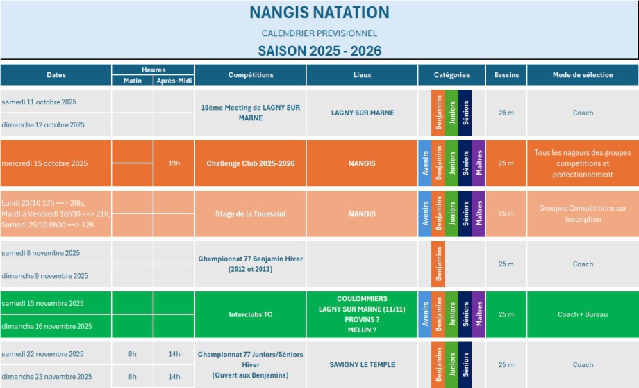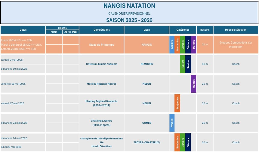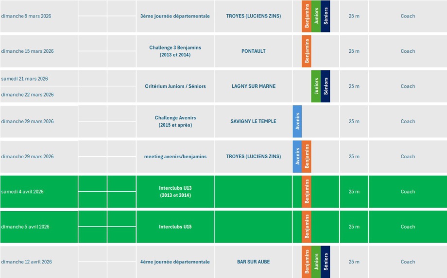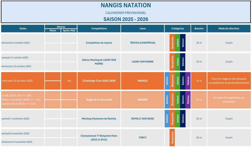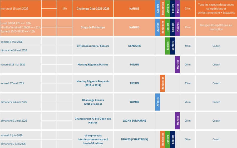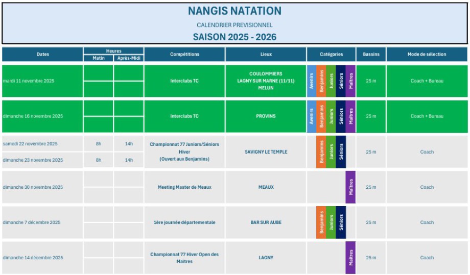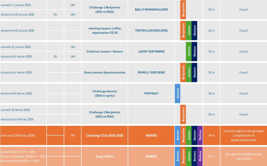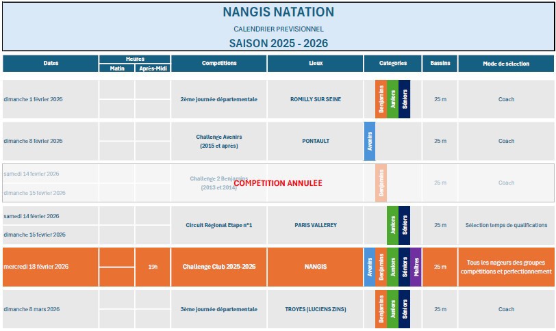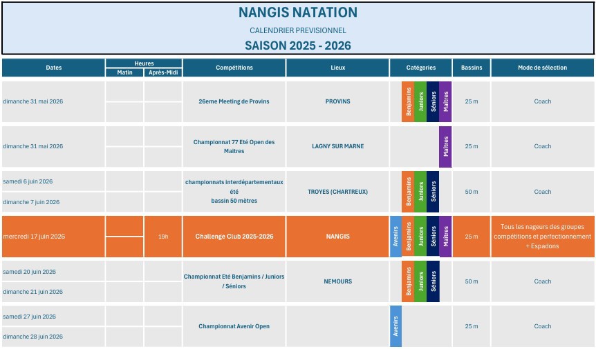 clubs paraitront et que les piscines des compétitions du département seront connues.