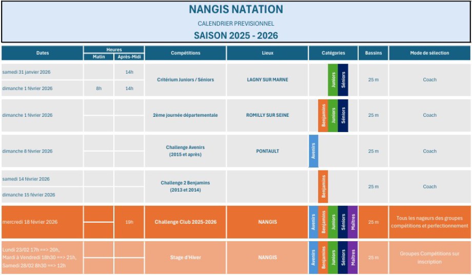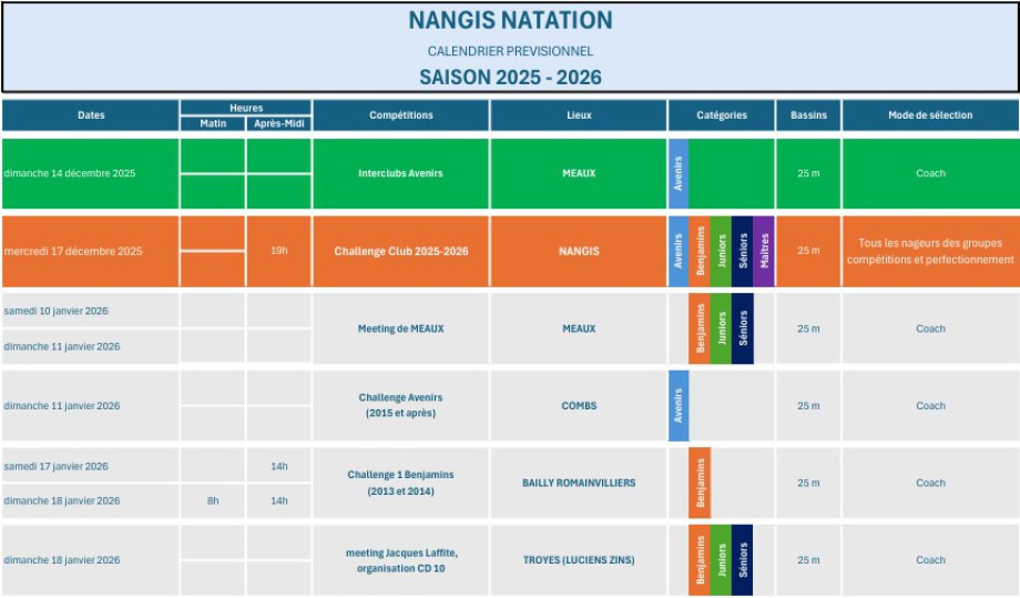 Le calendrier ci-dessous est provisoire et sera modifié au fur et à mesure que les dates des meetings