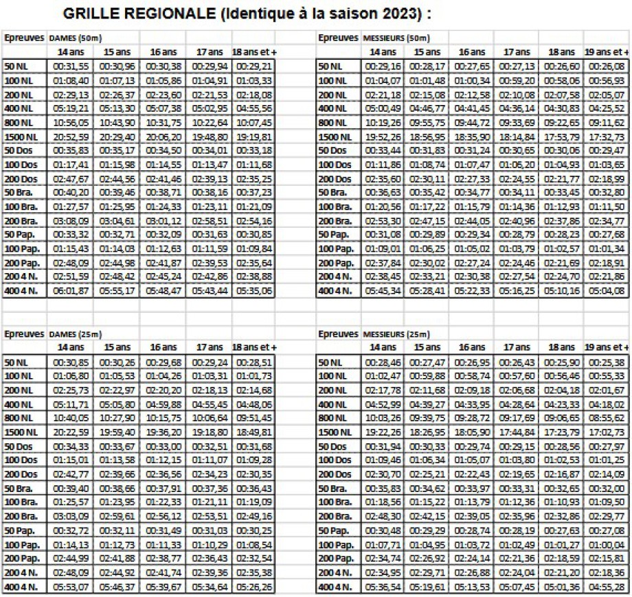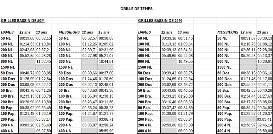 • Site FFN : Les classements et performances